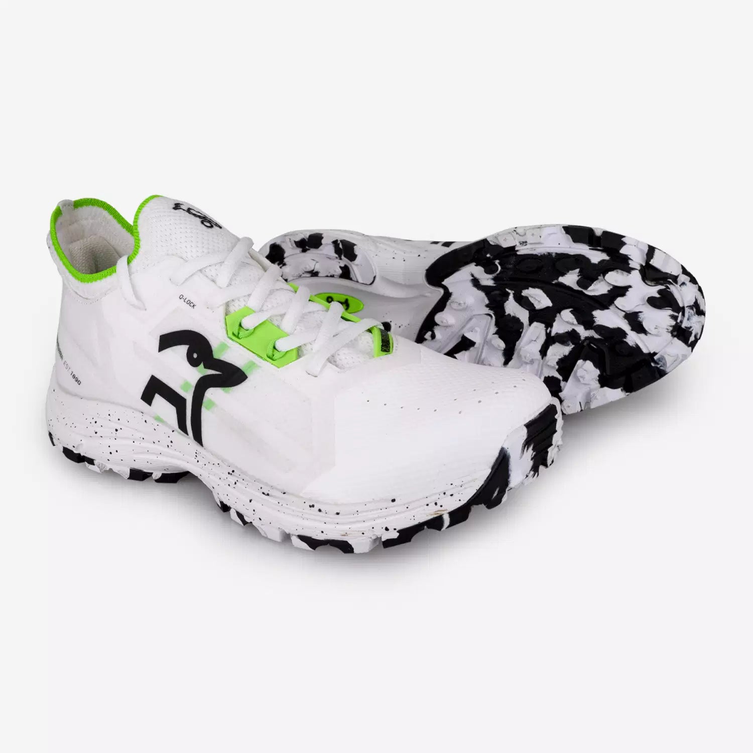 An elasticated knitted sock ensures a secure, adaptive fit, reinforced by Q Lock lacing technology for lockdown support during sharp movements. A rubberised toe box and heel support provide durability and stability, while a padded ankle and moulded foam insole enhance comfort for every sprint, stop, and shot.